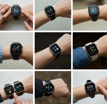 Os smartwatches vêm em diferentes designs, permitindo personalização com pulseiras e mostradores digitais. Você pode escolher entre modelos mais esportivos, casuais ou sofisticados para combinar com seu estilo.